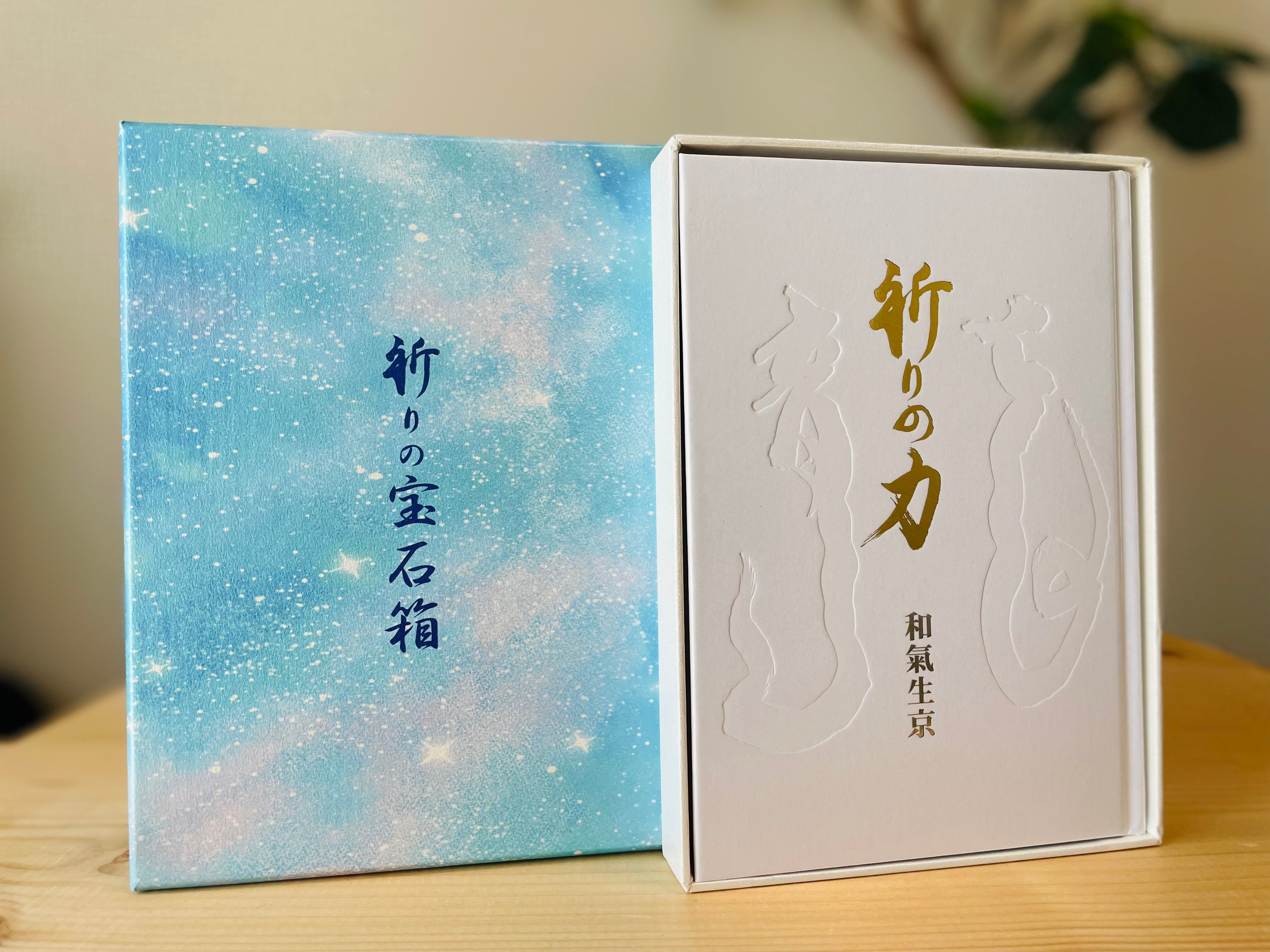 書籍には【祈りの宝石箱】と書かれた化粧箱がついており、2種類(青色又は黒金)からお選びいただけるようになっております。